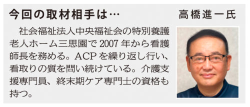 三思園が施設葬ケアを開始した意図・背景について、高橋進一看護師長は次のように話す。